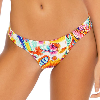 Tiki lights and summer romance inspired this bold and vibrant collection. Lace trims and delicate gold details illuminate this prints vibrancy. Offering a variety of chic styles and fabulous resortwear this collection will have you ready to dance in the moon night.