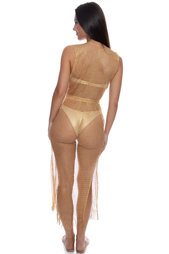 Ramp up your glamorous swimwear look several notches by adding this gorgeous poncho dress to a favorite Luli Fama swimwear piece or outfit. This ultra-femme dress is long, luxurious and sheer, showing off your lovely curves in the most enticing way possible. An open front allows you to highlight any area, and the fringe at the bottom sways with flirtatious fun.