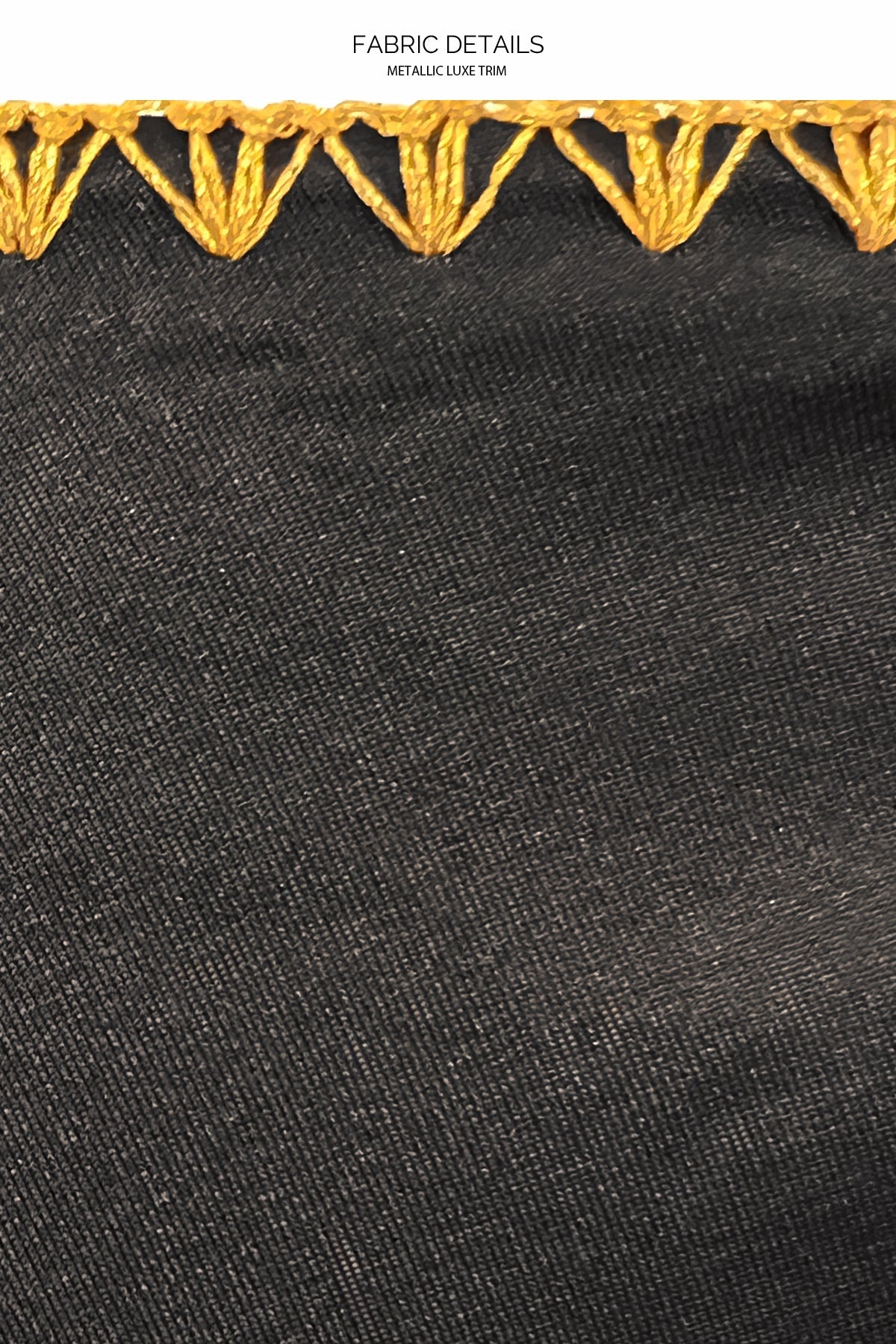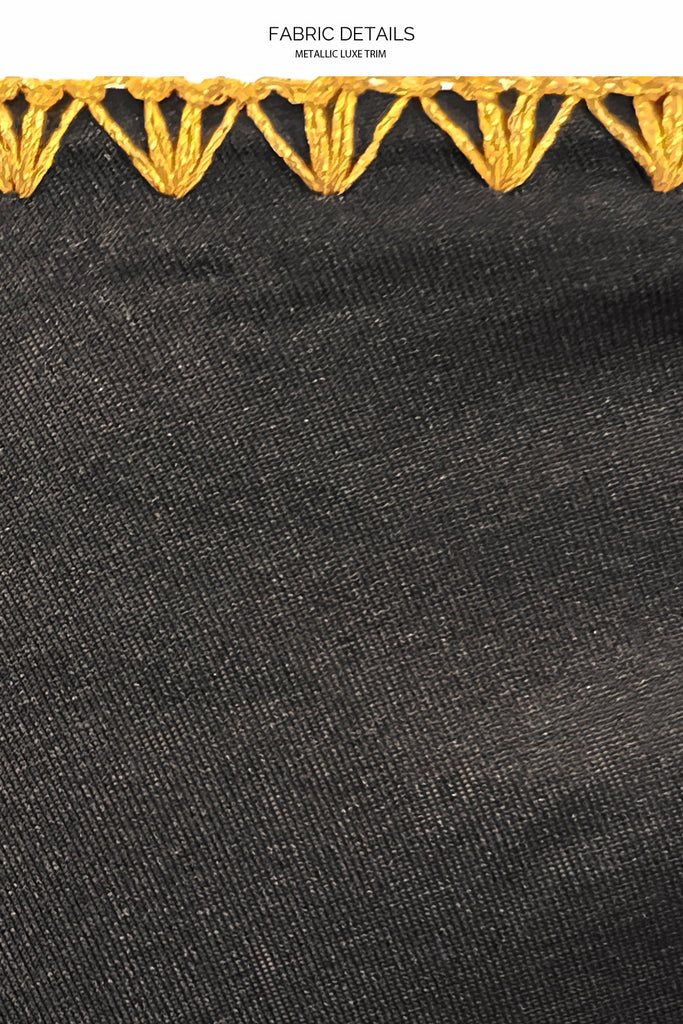 Blend chicness with a sultry swagger in this alluring fun-in-the-sun two-piece outfit that's made for tropical getaways. This chic black set, accented with Luxe Stitch trim, perfectly balances sophisticated style with playful vibes, ensuring you look fabulous whether you're enjoying the beach or lounging by the pool.