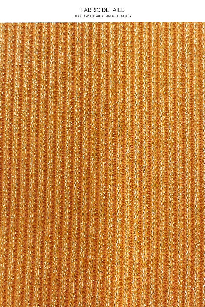 - Ribbed metallic fabric creates an edgy, stand-out look