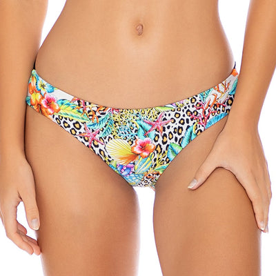 Combining florals with exotic animal prints the way only Luli Fama knows best. Exciting bright colors brighten up the sophisticated animal skins to create a tropical vibe set for paradise. Embellished pieces with crystals and and ring details add some spa