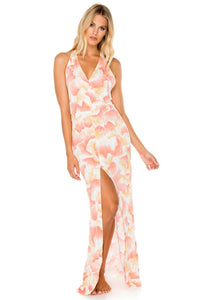 - Plunging V-neck with lace-up detail and low-cut back with open design