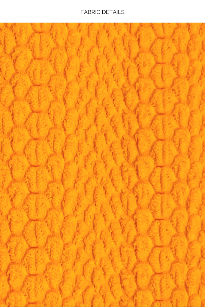 Rock a Luli Babe swimwear look that makes you feel confident and comfortable with this WAVY BABY bikini. Standout instantly and get noticed in a bright, Florida Citrus color that mimics the juicy healthfulness of fresh oranges plucked from the tree. The uplifting color can put you in a positive state of mind, and the subtle textured wavy pattern has a unique visual appeal.