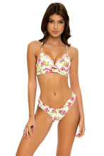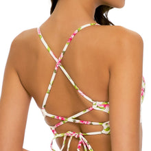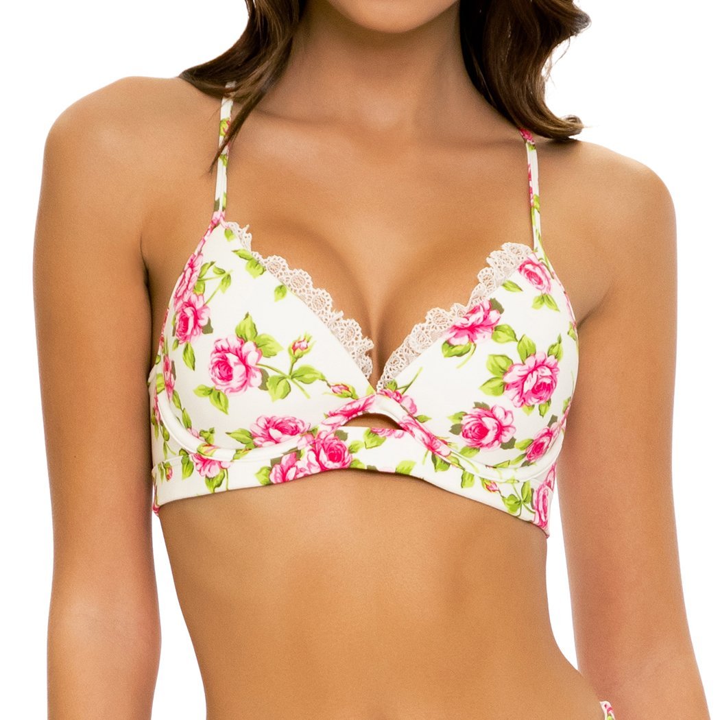 - This Top Has Great Underwire Support And Thick Breast Line Band For Comfort - Lacey Details Outline The Cleavage Trim - Center Cut Out Detail - Sporty Corset Style Back Offers An Adjustable Fit - String Ties Completed With Our Classic Luli Rings - Prints are not exact and may vary according to cut - 80% Nylon 20% Spandex