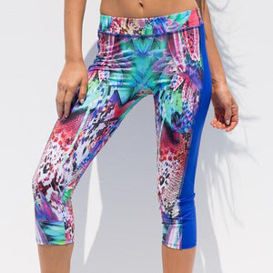 -Printed capris with elastic hip band for comfort -Length below the knee -Mesh cut outs out of the highest quality fabrics give you the perfect cool down for high performance -Two way stretch design -Fabric is 65% recycled Polyamide and 35% Elastomer -High Lycra content ensures the perfect fit for higher shape retention -Impressive muscular compression create excellent power during your workout routines UV protection of 50 %