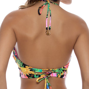 - Halter Top With A Flirty Flare - Halter Style Top - Peek-a-boo Center Cut Out - Center Ring Detail - Ties At The Neck And Back For An Adjustable Fit - String Ties Completed With Our Signature Luli Rings - Prints Are Not Exact And May Vary According To Cut - 81% Nylon 19% Spandex