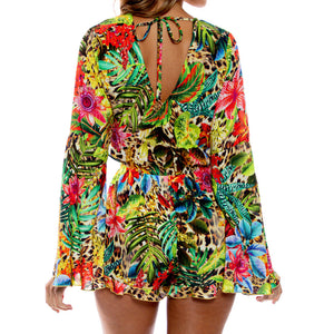 - Loose Fit Romper - Perfect Brunch Or Beach Side Outfit - Flowy Bell Sleeves - Ties In The Neck For An Adjustable Fit - Deep V Neckline - Elastic Waist Band For A Comfortable Snug Fit - Prints Are Not Exact And May Vary According To Cut - 98% Viscose 2% Lurex