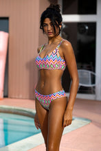 Vibrant colors such as neon green, blue and pink pop with excitement as they dance across your body in geometric shapes. When wearing this bikini, expect to be seen as the "it" girl who knows how to relax and make every moment count.