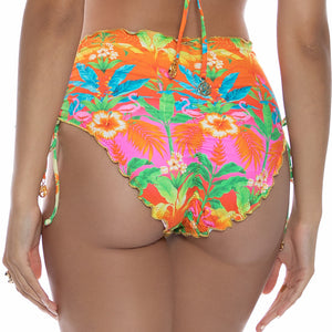 - High Waist Full Coverage Bottom - Flirty Gold Wavy Trim - Our Classic Ruched Back Design - Drawstring Sides Allow You To Style To Your Choice - String Ties Completed With Our Signature Luli Rings - Prints Are Not Exact And May Vary According To Cut - 80% Nylon 20% Spandex